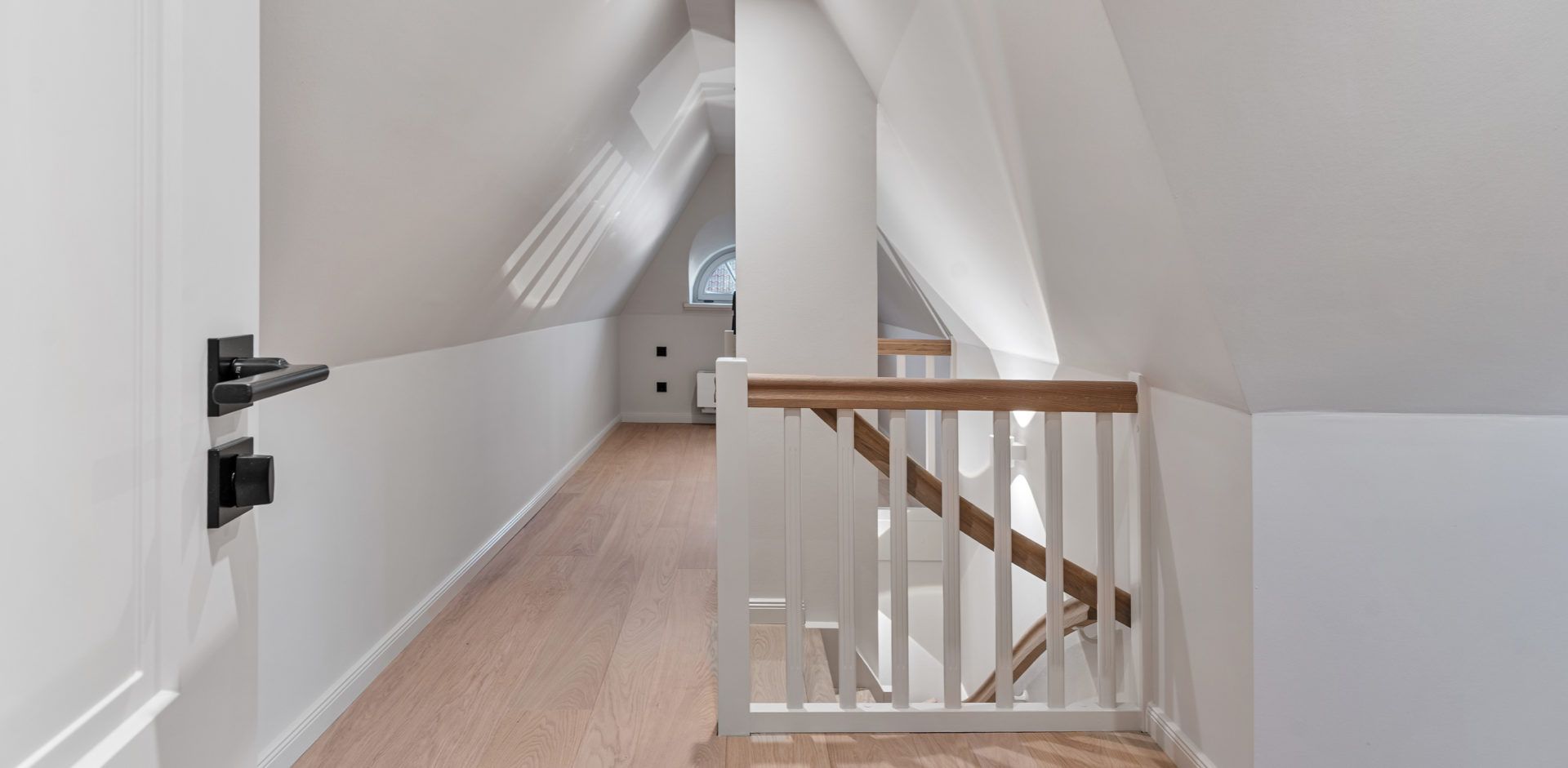 Alle Häuser sind familiengerecht geplant und haben eine perfekte Süd-West-Ausrichtung. Freuen Sie sich auf eine sonnige Terrasse, einen großen Wohnbereich mit offener Küche, auf 3 Bäder, 1 Extra-WC und natürlich auf die Sauna mit Fitness- bzw. Wellnessbereich im wohnlichen Untergeschoss. Hier befindet sich auch das großzügige Gästezimmer – mit Ausblick auf eine Strandlandschaft, die als beleuchtetes Lichtschachtbild eingebaut ist. Und ganz oben im Spitzboden erwartet Sie ein ganz besonders kuschliger Raum.